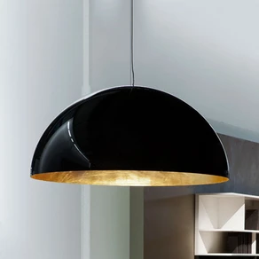 Svarte pendellamper finnes i stadig nye, fascinerende design for moderne interiør så vel som for industristil, Scandi eller vintage. I dag er det minimalistiske former og svarte lampeskjermer i en miks av materialer med tre som er på moten. Kombinasjonen av en svart ytterskygge og en gullfarget innerskygge er også spesielt populær. Denne sorte og gullfargede designen kombinerer det koseligste lyset med elegansen i svart.