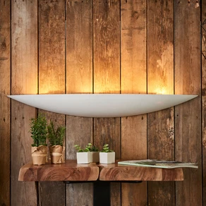 Bortsett fra strømtilkoblingene til veggen, er det ingen til taket? Da bør du velge lyse vegglamper med et høyt lumen\ tall som kan gi grunnleggende lysstyrke. Vegglamper som spotlighter oppover og nedover eller mot veggene som helhet, er ideelle, ettersom lyset da reflekteres og sendes ut i rommet. Dette kalles indirekte lys.