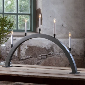 Mens klassiske adventsstaker viser detaljerte scener - med utskårne figurer, små hus eller julelandskap - fokuserer moderne adventsstaker på reduksjon. Det handler ikke om å fortelle en historie, men om effekten av form, lys og materiale. Den moderne adventsstaven fremstår som et grafisk lysobjekt: ofte en enkelt bue med et underforstått motiv eller uten noen spesifikk avbildning i det hele tatt.