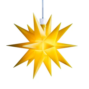 En LED-stjerne for oppheng kombinerer stilfull belysning med fleksibel plassering. I vinduet, i taket eller over spisebordet - det myke lyset skaper en varm og innbydende atmosfære. En svevende belyst stjerne er et dekorativt blikkfang, spesielt i vinduer, samtidig som den skaper en stemningsfull atmosfære i taket eller over møbler.