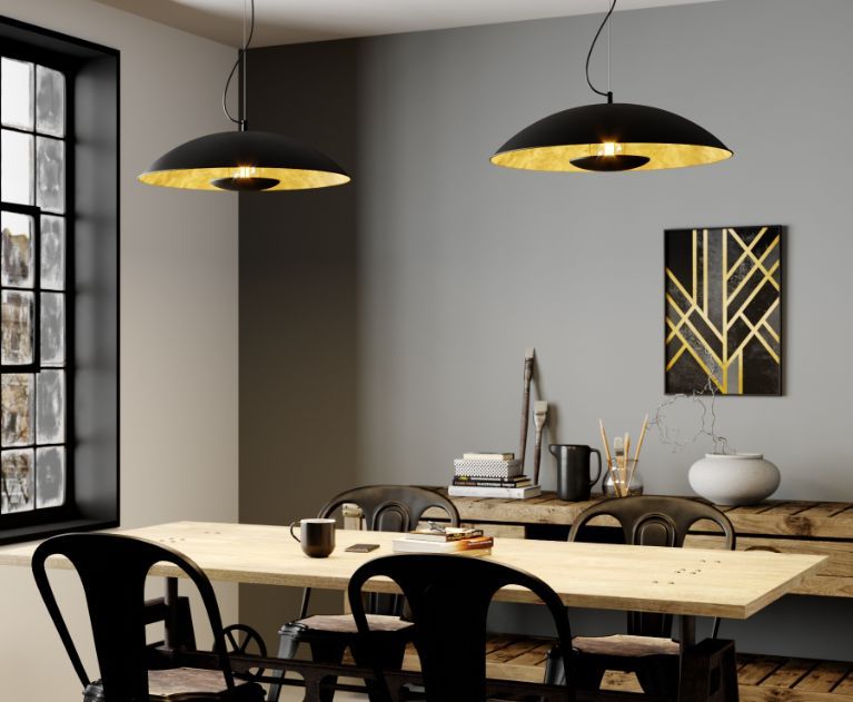 Der Lichtkegel von Hängeleuchten umschließt den Esstisch und die angrenzenden Stühle. Dadurch wird für gemütliches Ambiente gesorgt und die Umgebung sanft ausgeblendet.