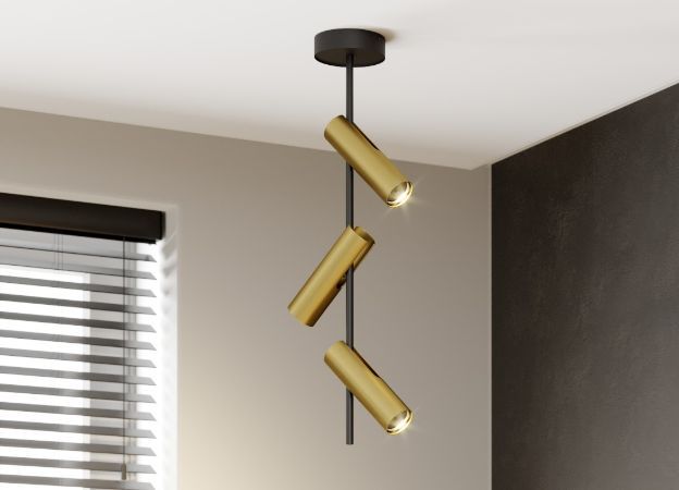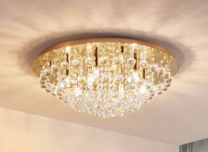 For generell belysning med taklamper er gulltoner svært populært. De kan gi enkle spotter et skinnende utseende, men i kombinasjon med glinsende krystaller kan de også konkurrere med en lysekrone.