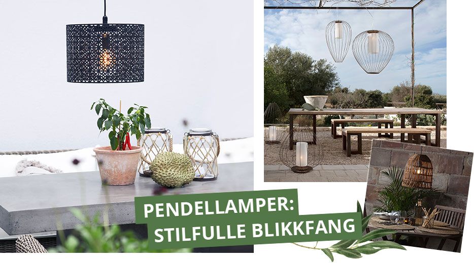 En pendellampe har man alltid lyst på! Og, er man så heldig å ha et tak å henge den i, ja da er det bare å begynne jakten. Designerne har ikke latt pendellampene som er ment til å brukes utendørs være annenrangs i forhold til innendørs pendellamper. Disse lampene sørger for stilfulle øyeblikk utendørs.