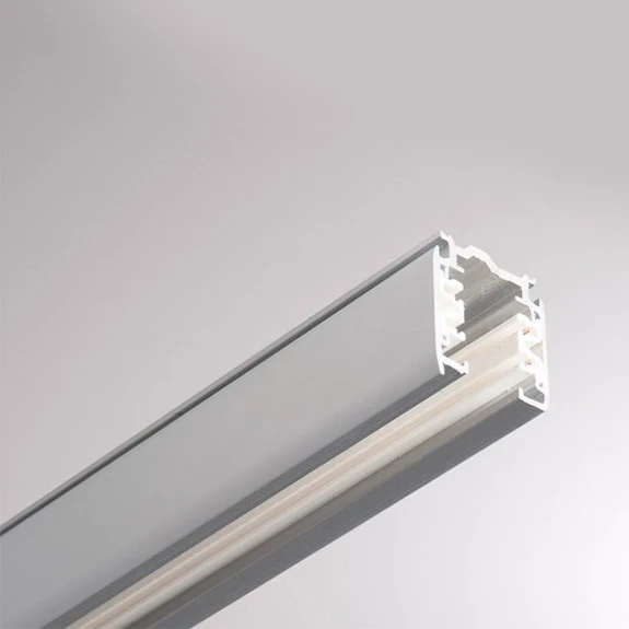 3-fase skinne Noa - utenpåliggende eller nedhengt montering Den fargelakkerte skinnen for et 3-fase skinnesystem er egnet for utenpåliggende eller nedhengt montering. Ideell for butikkbelysningssystemer. Matchende tilbehør, som endestykker, mating eller ulike koblinger, er tilgjengelig separat - Kobberleder Ø 4 mm² - Asymmetrisk design