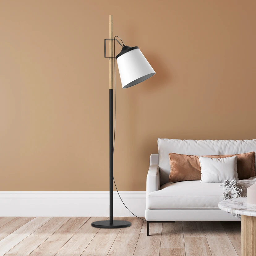 Aluminor Woody gulvlampe, svart/hvit/tre