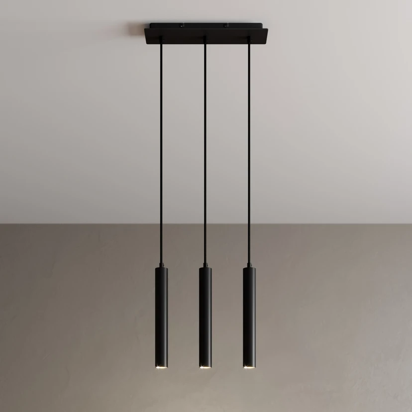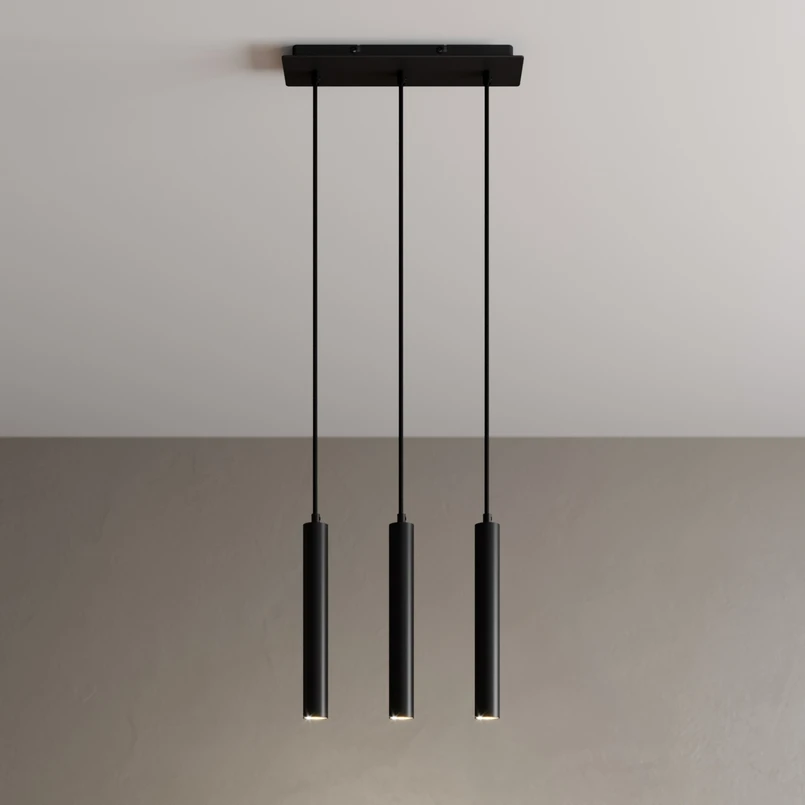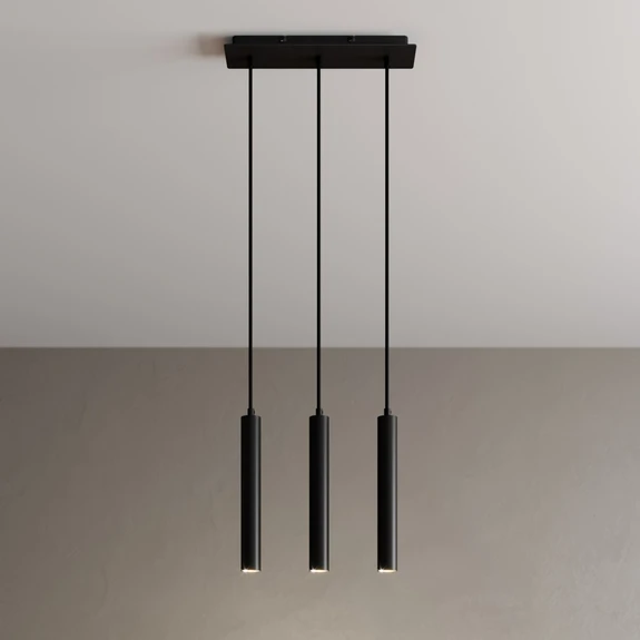 Avlang, 3 lyskilder Franka LED-pendellampe med smale lyssylindere i svart Franka er ideell til belysning av bordflater eller smale bar- og kjøkkenbenker. De tre lampeskjermene er laget av aluminium og har en usedvanlig smal design. Den estetiske helhetsdesignen kompletteres av en sofistikert svart overflate som gir et kjølig og elegant uttrykk. Lyset er rettet nedover, og med en spredningsvinkel på 24 grader fremhever den omgivelsene. Takket være tre LED-pendellamper kan pendellampen brukes til å skape et passende lysnivå i stuen, samtidig som energiforbruket holdes lavt. Dette gir god effektivitet, noe som er helt i tråd med behovene til moderne forbrukere - Høy slagfasthet (IK08) - SDCM < 5