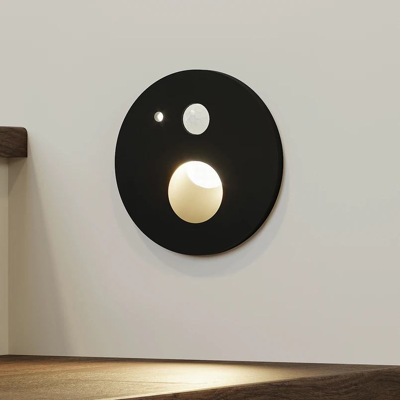 Sort Neru LED-innfelt lys med en subtil design og praktisk bevegelsessensor