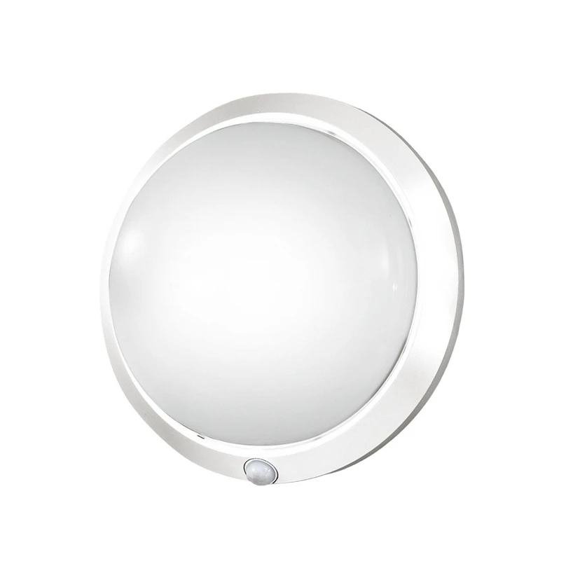 Laget av robust polykarbonat - den runde utendørs vegglampen Armilla Den runde vegglampen Armilla er designet for utendørs bruk og er utstyrt med en bevegelsessensor. Denne har en rekkevidde på opptil 7 m og en registreringsvinkel på 100°. Ved behov kan den utendørs vegglampen også monteres i taket. Takket være den pålitelige bevegelsesdeteksjonen er den ideell for inngangspartier der det er behov for midlertidig lys.