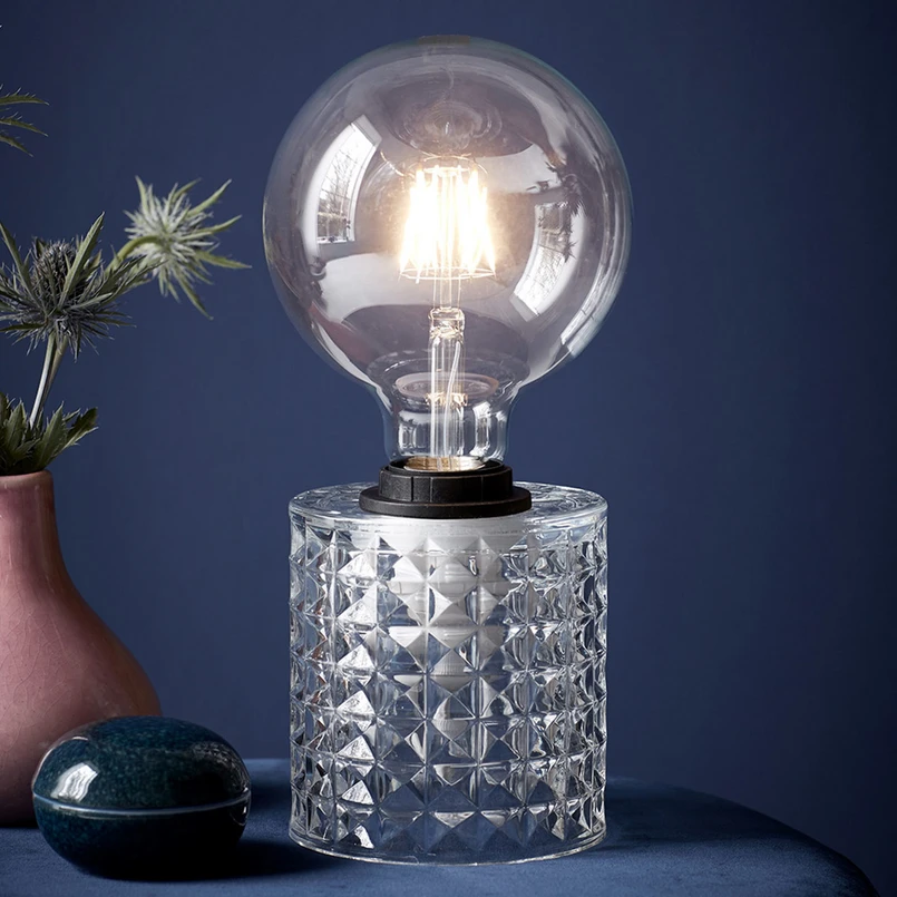 Med sin base laget av farget, men likevel litt gjennomsiktig glass, fortryller Hollywood- bordlampe overalt hvor den brukes i stuen: i stuen som leverandør av koselig tilleggsbelysning, på soverommet som lyskilde til nattbordet eller for eksempel som en vinduskarmlampe som også gir lys gir et innbydende inntrykk til omverdenen.