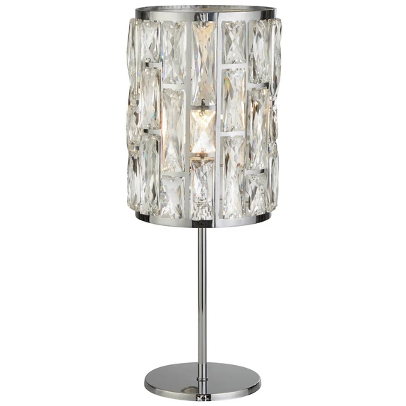 bordlampe Bijou er en dekorativ perle av moderne lyskultur, hvor skjerm er laget av krystaller med en kromfarget kant og støttes av en stang som også har en strålende forkromning og glitrer nesten like imponerende i det lyset som sendes ut som krystallene i skyggen.