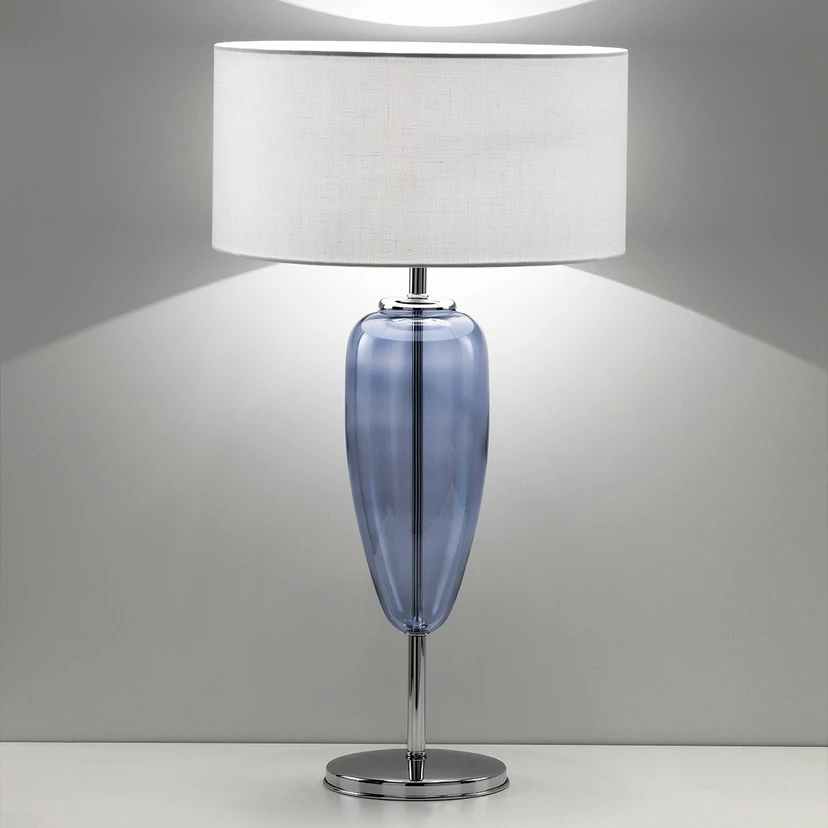 Uansett hvor du plasseres bordlampen Show Ogiva vil den tiltrekke seg oppmerksomhet, ikke bare fordi den er høy, men også fordi den er utrolig vakker. Show Ogiva med hvit tekstilskjerm og enkel, forkrommet metallstamme har et klassisk design, og det vakre glasselementet bidrar det eksklusive utseendet. Det er munnblåst og viser italiensk glasskunst på sitt beste.