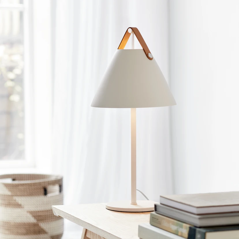 Bordlampe Strap av metall med lærreim, hvit
