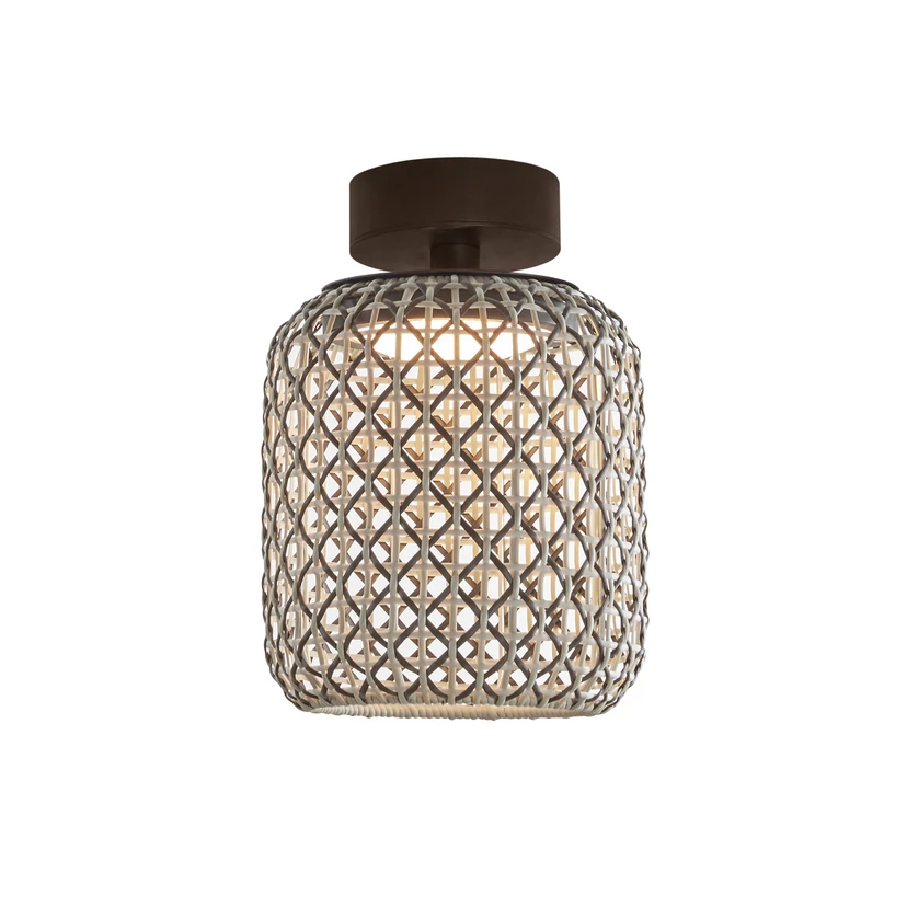 LED-taklampe Nans for utendørs bruk Armaturene i Nans-serien er designet av Joana Bover, grunnleggeren av det Barcelona-baserte selskapet med samme navn. Med sine design ønsker designeren å formidle lettheten i middelhavsstilen. Taklampen Nans har en skjerm laget av flettet stoff som består av syntetiske fibre. Kapslingsklasse IP54 beskytter lampen mot fukt og støv, slik at den uten problemer kan brukes utendørs, f.eks. i paviljonger, på terrassen eller balkongen.