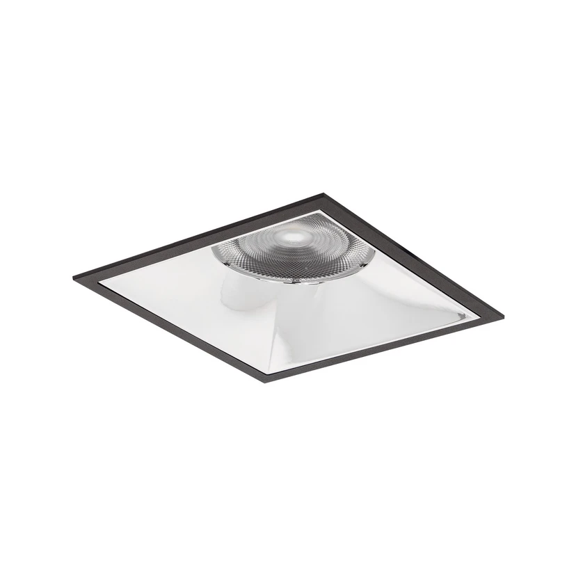 Kvadratisk innfelt LED-downlight Apollo Maxi, glatt reflektor, DALI-dimbar Den kvadratiske innfelte LED-downlighten Apollo Maxi kan monteres i taket uten verktøy ved hjelp av monteringsfjærer. Den sølvfargede reflektoren med rotasjonssymmetrisk, smal og bredstrålende lysfordeling gir godt lys i mange ulike rom, og det transparente plastdekselet sørger for optimal lysfordeling - spesielt god fargegjengivelsesindeks CRI > 90 - levetid L80/B10 ved 25 °C: 50 000 timer, levetid L80/B50 ved 25 °C: 50 000 timer - husmateriale: aluminium / glass / plast - tillatt omgivelsestemperatur (ta): -20 °C - +25 °C - inkl. elektronisk forkobling, DALI-dimbar