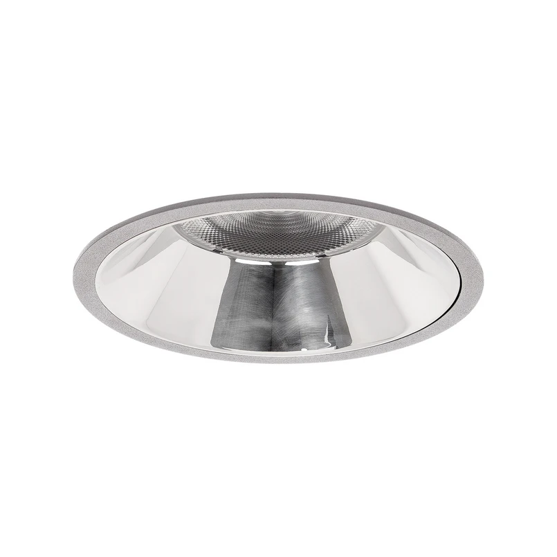 Innfelt LED-armatur Apollo Maxi, rund, glatt reflektor Takket være det store utvalget av modeller kan den innfelte LED-armaturserien Apollo løse en rekke ulike belysningsoppgaver, fra jevn belysning til presis aksentuering. Apollo er det perfekte belysningsverktøyet for elektrikere, planleggere og designere til utallige bruksområder som resepsjoner, korridorer, kontorer, konferanserom, butikker og museer. Downlighten oppfyller alle standarder og har høy systemeffektivitet. Den er laget av aluminium og er utstyrt med en glatt reflektor og et gjennomsiktig plastdeksel. Takket være monteringsfjærene kan den monteres i taket uten bruk av verktøy. Den sølvfargede, glatte reflektoren med rotasjonssymmetrisk, smal- og bredstrålende lysfordeling sørger for høyt lysutbytte, og det transparente dekselet sørger for optimal lysfordeling - spesielt god fargegjengivelse - fargegjengivelsesindeks CRI > 90 - levetid L80/B10 ved 25 °C: 50. 000 timer, levetid L80/B10 ved 25 °C: 50. 000 timer.000 timer, levetid L80/B50 ved 25 °C: 50.000 timer - husmateriale: aluminium / glass / plast - tillatt omgivelsestemperatur (ta): -20 °C - +25 °C - med elektronisk forkoblingsutstyr, koblingsbar. ikke dimbar
