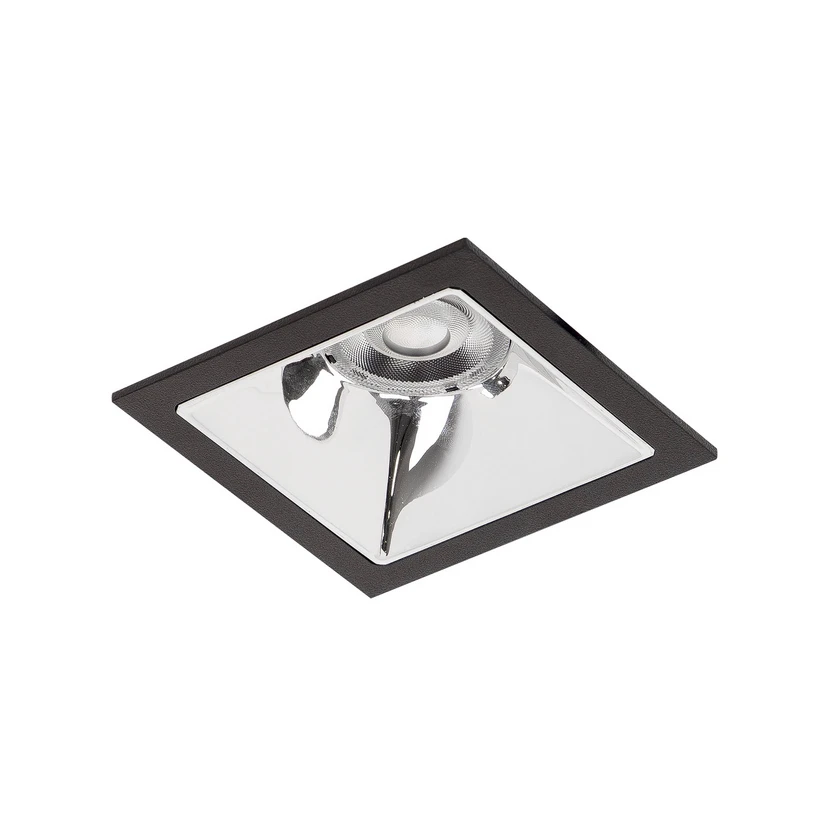 Innfelt LED-spotlight Apollo Mini, glatt reflektor, kvadratisk, med forkoblingsenhet, koblingsbar Den kvadratiske innfelte LED-downlighten Apollo Mini kan monteres i taket uten verktøy ved hjelp av monteringsfjærene og leveres klar for tilkobling til 230 V med koblingsbar elektronisk forkobling (ikke dimbar). Den innfelte LED-spotlighten har en glatt, sølvfarget reflektor med rotasjonssymmetrisk, smal- og bredstrålende lysfordeling og en transparent plastavdekning som sikrer høyt lysutbytte og optimal lysfordeling og gjør den innfelte spotlighten spesielt systemeffektiv. Apollo Mini innbyggingsspotlight og alle andre LED-downlights i Apollo-serien fra Brumberg kan brukes til en rekke ulike belysningsoppgaver i kommersielle og private områder, fra homogen belysning til presise lyspunkter. De oppfyller alle standarder og er et perfekt belysningsverktøy for elektrikere, planleggere og designere - generell fargegjengivelsesindeks CRI > 90 - levetid L80/B10 ved 25 °C: 50 000 timer, levetid L80/B50 ved 25 °C: 50 000 timer - husmateriale: aluminium / glass / plast - tillatt omgivelsestemperatur (ta): -20 °C - +25 °C - med elektronisk forkoblingsenhet, koblingsbar, ikke dimbar