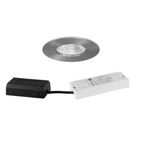 LED innfelt downlight BB20 DALI dimbar driver og koblingsboks, IP65 LED innfelt downlight BB20 leveres med en DALI dimbar LED-driver og en 5-polet koblingsboks for gjennomkobling. Med IP65-beskyttelse er den støvtett og beskyttet mot vannstråler, noe som gjør den perfekt for belysning av velværeområder eller andre fuktige områder i næringsbygg. Det varmhvite lyset fra de innebygde LED-lampene avgis optimalt med en spredningsvinkel på 36° fra en sølvfarget reflektor med rotasjonssymmetrisk, bredstrålende lysfordeling og transparent plastdeksel. Takket være monteringsfjærene kan den innfelte spotlighten monteres uten verktøy. Kan monteres i tak med en tykkelse på opptil 1,7 cm - leveres med elektronisk forkobling, DALI-2-dimbar - tillatt omgivelsestemperatur - 20 til 25 °C - må ikke tildekkes med varmeisolerende materiale - høy kapslingsklasse IP65