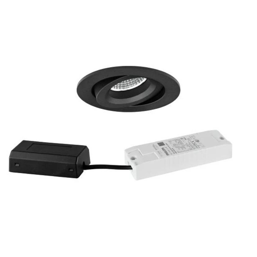 Rund innbyggingsspotlight med integrert LED-driver BB34 er en innbyggingsspotlight for verktøyfri takmontering med innfelte fjærer. Reflektoren er sølvfarget og har en rotasjonssymmetrisk, dyp og bred lysfordeling. Optimal lysfordeling takket være et gjennomsiktig deksel i polykarbonat - Tillatt omgivelsestemperatur (ta): -20 °C - 25 °C - Med elektronisk forkoblingsutstyr, dimbar DALI