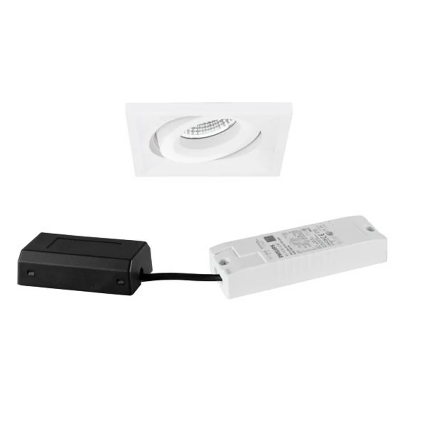 Kvadratisk innfelt spotlight med integrert LED-driver BB37 er en innfelt spotlight for verktøyfri takmontering med innfelte fjærer. Reflektoren er sølvfarget og har en rotasjonssymmetrisk, dyp og bred lysfordeling. Optimal lysfordeling takket være et gjennomsiktig deksel i polykarbonat - Tillatt omgivelsestemperatur (ta): -20 °C - 25 °C - Med elektronisk forkoblingsutstyr, dimbar DALI