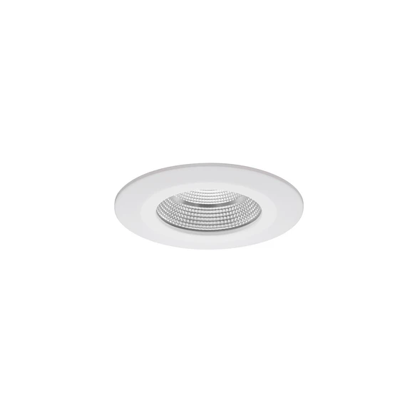 LED innfelt downlight Lydon, dimbar via DALI, med ballast og tilkoblingsboks Den runde LED innfelte downlighten Lydon i aluminium er utstyrt med et deksel av transparent glass og en fasettert, sølvfarget reflektorpære med rotasjonssymmetrisk, smal bredstrålende lysfordeling. Den er dimbar via DALI og leveres med en tilkoblingsboks og et elektronisk ballast. Downlighten kan installeres i taket uten behov for verktøy ved hjelp av en innfelt kjerne. Med en blendingsindeks på UGR <19 er downlighten også spesielt egnet for kontorer og andre arbeidsplasser. Produktfordeler: - Levetid L70/B50 ved 25 °C: 50 000 t - Tillatt omgivelsestemperatur (ta): -20 °C - +25 °C - Beskyttelsesklasse (EN 61140): II, kapslingsgrad (DIN EN 60529): IP20 - Enkel, verktøyfri installasjon - Blendingsverdiindeks UGR < 19 - Maksimal taktykkelse 24 mm - Leveres med elektronisk, dimbar DALI-ballast og 5-polet koblingsboks med strekkavlastning