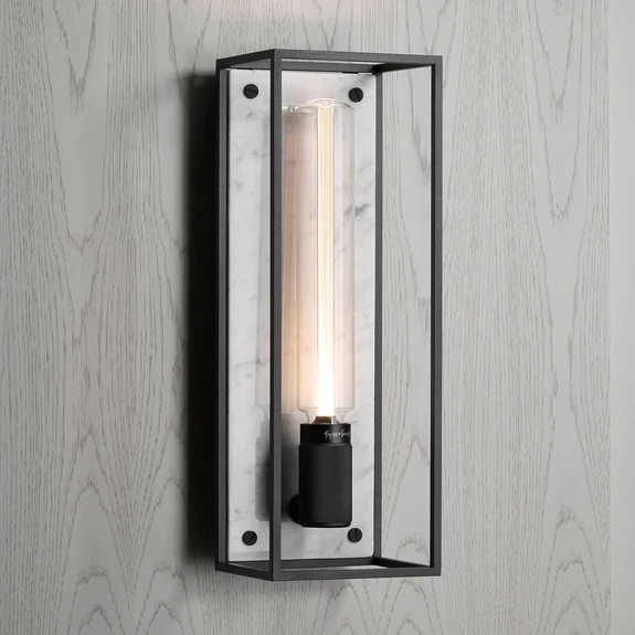 Caged Wall large - vegglampe med åpen planløsning med bakvegg i marmor og LED-rørlampe