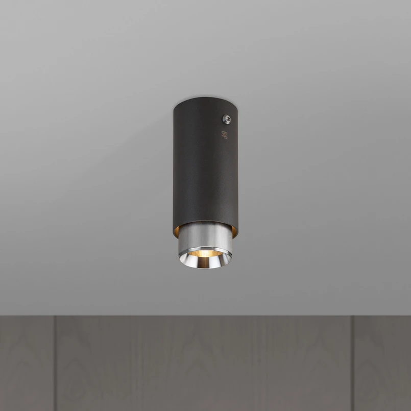 Exhaust Surface er en moderne spotlight for takmontering, som består av et pulverlakkert rustfritt stålhus i sylindrisk form og en solid utvendig korrugert metallinnsats. Sistnevnte er - i tillegg til de synlige Torx-skruene - det karakteristiske trekk ved lampeserien Exhaust. Med sin avfasede, skinnende innside sørger innsatsen for en retningsbestemt lysutslipp, mens et honeycomb-filter foran GU10-sokkelen reduserer gjenskinn.