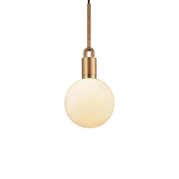 Forked pendellampe laget av messing med en håndblåst kule laget av opalt glass