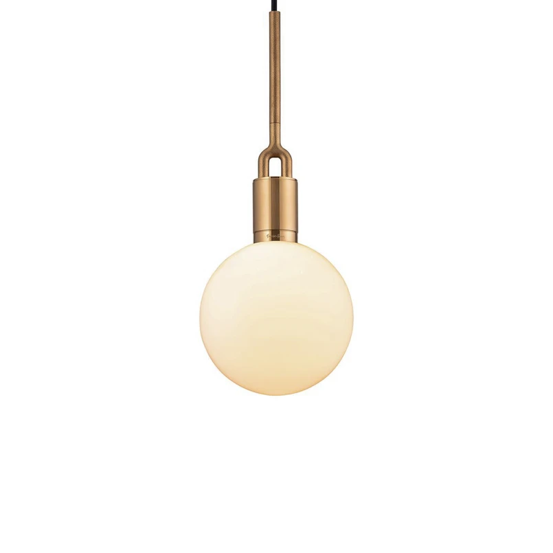 Forked er laget av en solid, høykvalitets støpt og maskinert messingoppheng med Buster + Punchs signatur-diamantskårne lineære riflemønster på sokkelen og en håndblåst opalglasskule, og er et anheng som passer til ethvert interiør. En dimbar LED-lampe med varmhvit lysfarge leveres for bruk i E27-sokkelen. En dimmer egnet for LED-lamper kreves for å dimme armaturen. Kombinasjonen av messing og opalt hvitt glass gir lampen et klassisk preg og gjør den til en lyskilde som kan brukes på en rekke måter i private rom så vel som i kommersielle eller gastronomiske områder, som avgir lyset behagelig blendfritt og jevnt fordelt rundt gjennom kulen laget av opalglass.