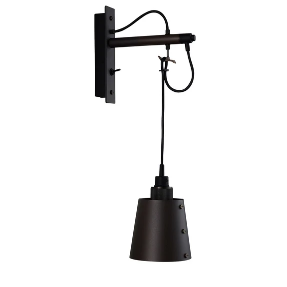 Vegglampe Hooked Wall small med brakett, metallskjerm og lang kabel