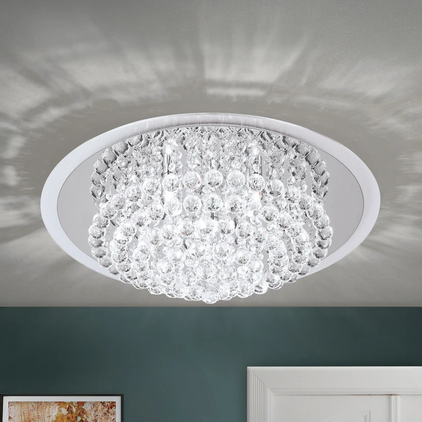 Denne edle taklampen CAROL stråler selv uten belysning. Rikt krystallanheng på en reflekterende forkrommet takplate og 9 lyspærer sørger for optimal belysning med stemningsfulle lysreflekser.