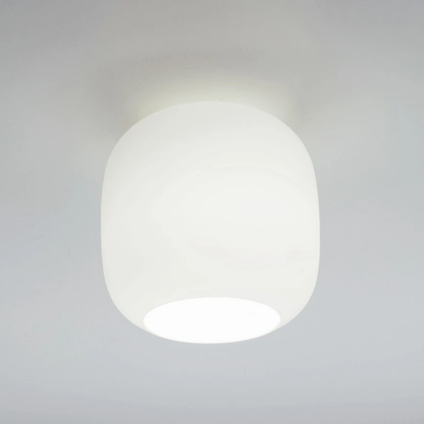 Som en jevnt glødende sfære har Murea taklampe, produsert i Tyskland, et behagelig og attraktivt utseende. Glasskjermen, inspirert av japanske lykter, hvis form ligger mellom sylinder og kule, gir grunnbelysning belysning med lys spredt rundt, mens den nedre runde åpningen - for eksempel over et bord - gir direkte lys. Avhengig av lyskilden til den valgte lyskilden, kan Murea brukes til ekstra belysning eller som hovedlyskilde.