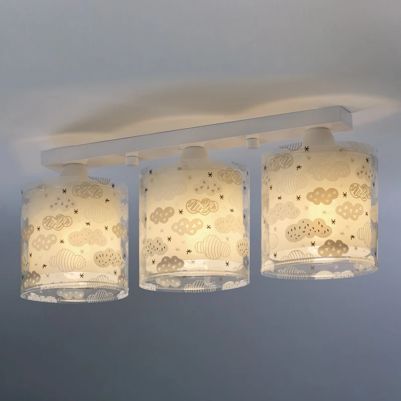 Clouds taklampe med tre lys i grått Et spesielt høydepunkt i Clouds taklampe med tre lys er lampeskjermene i plast i to lag. De mindre innerskjermene er designet i en diskret gråfarge og danner en kontrast til den klare ytterskjermen. Dette gjør at skymotivene på det transparente materialet kommer godt til sin rett. Når du velger lyskilde (ikke inkludert), bør du ta hensyn til en maksimal lengde på 11 cm. Alle typer E27-pærer opp til maks. 60 W er egnet, og vi anbefaler energibesparende LED-pærer med lang levetid.