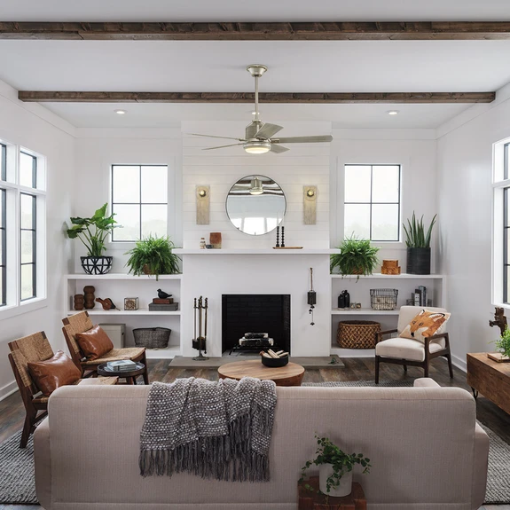Colerne 52 LED-takvifte med LED-downlight Colerne 52 er en LED-takvifte som bringer litt vintage eller industriell stil inn i rommet. De fem bladene og motorhuset har et forvitret treutseende, mens metallelementene er i børstet nikkel. Takket være LED-lyset nederst på viften kan den også erstatte en taklampe, og de innebygde LED-lampene avgir et varmhvitt lys som kan dimmes trinnløst med den medfølgende fjernkontrollen. Funksjoner Viften kan stilles inn på tre hastigheter med den medfølgende fjernkontrollen. Den kan monteres i tak med en takhelling på maks. 30°. Tekniske data - 3 hastigheter: min. 78 o/min, maks. 175 o/min - 59,2 W - AC-motor - Sirkulert luftmengde maks. 146,96 m³, min. 55,95 m³ - Støynivå 37,5 dB