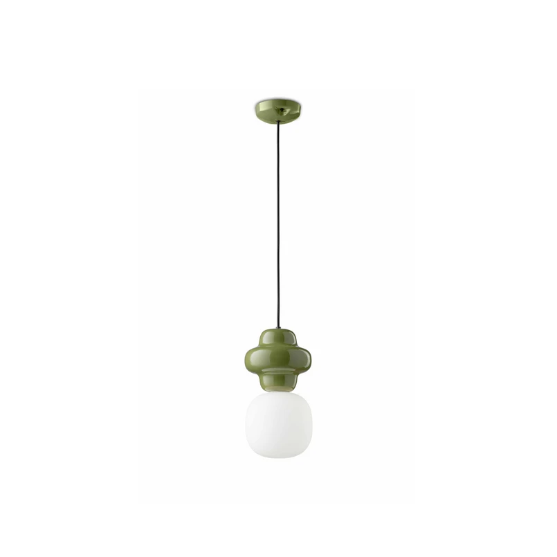 Copacabana pendellampe med keramisk oppheng Pendellampen Copacabana er et absolutt blikkfang overalt i stue/spisestue eller på kjøkkenet, enten den er slått på eller av. Copacabana-pendellampen har et visuelt tiltalende design, og takket være det hvite lampeglasset sørger den for en blendingsfri omgivelsesbelysning. Enten det er som bordbelysning eller som lyskilde for effektiv allmennbelysning: Copacabana kan brukes til en rekke ulike belysningsoppgaver - made in Italy