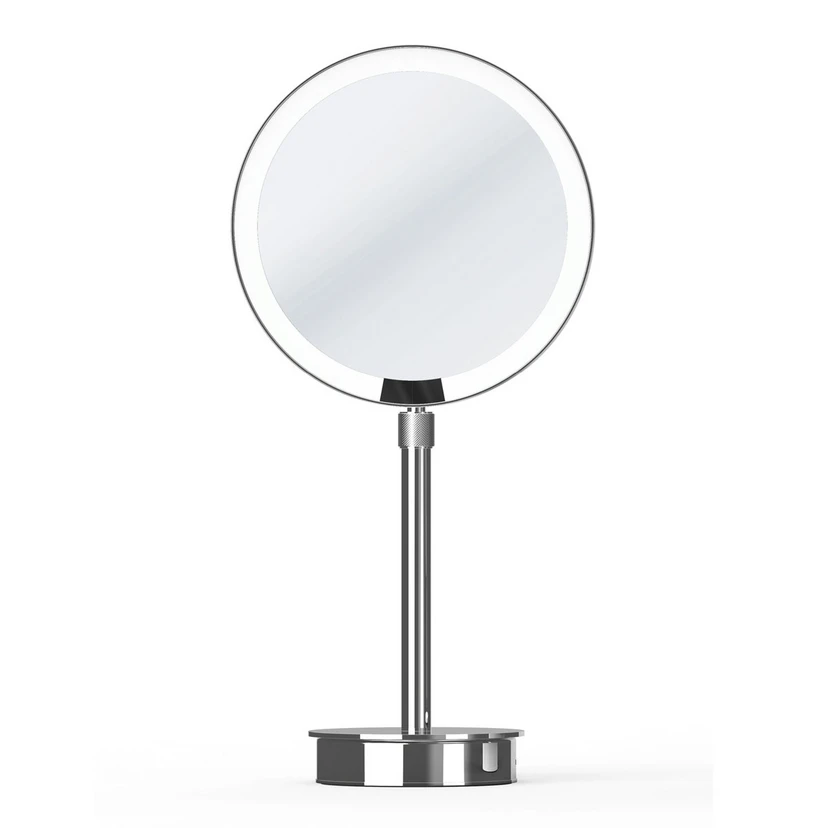 En moderne allrounder for sminkebordet - LED-bordspeil Just Look Plus SR Ved første øyekast ser LED-bordspeilet Just Look Plus SR ut som et enkelt, moderne sminkespeil. Bestående av et rundt speilglass omgitt av lysdioder og holdt av en stang på en rund base, er Just Look Plus SR et opplyst speil for badet. Ved nærmere inspeksjon og bruk overbeviser Just Look Plus SR imidlertid med mange funksjoner som gjør det unikt.Følgende funksjoner er inkludert i Just Look Plus SR:- 5x forstørrelse- LED-belysning- Oppladbart batteri 3,7 V litiumion- Oppladbart og utskiftbart med 2 m USB-kabel og strømforsyningsenhet- Bevegelsessensor- Automatisk av-funksjon etter 15 sekunder- Dimbar, samt lysfarge justerbar- Høydejusterbar fra 38 til 44 cm