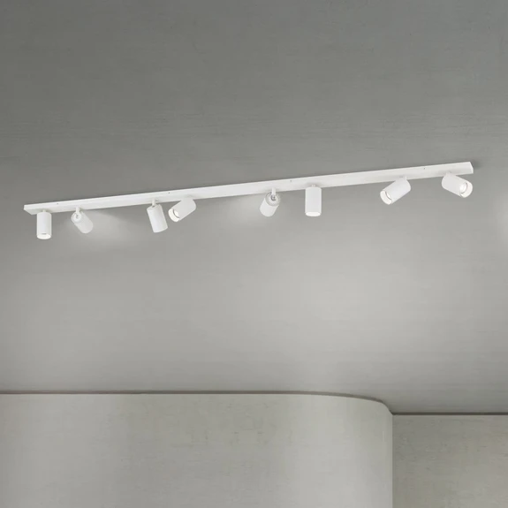 Moderne og minimalistisk på samme tid – det er det som gjør den lange downlighten Sean med 8 lyskilder til det den er. Nemlig et kompromissløst, moderne lysobjekt med karakter. Spotlighten avgir rettet lys og er med sine åtte spots svært godt egnet til soneopplysning i større rom. Med sitt slanke utseende passer denne minimalistiske lampen like godt i stuer og soverom som i kjøkken eller ganger. Stativet er laget av stål, de åtte spots er av aluminium. De kan justeres individuelt, for eksempel for å belyse bordflater, bilder eller hyller. Spotlisten kan festes både på taket og på veggen, horisontalt eller vertikalt. GU10-fatningene i spotene kan utstyres med pærer på maksimalt 13 watt (LED).