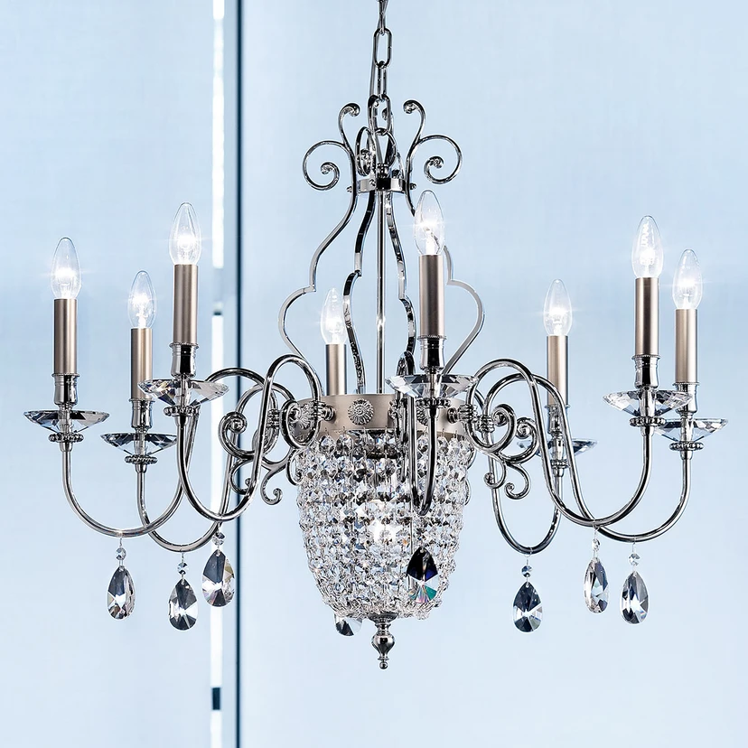 Elegantia - åttearmet lysekrone med glitrende hengninger