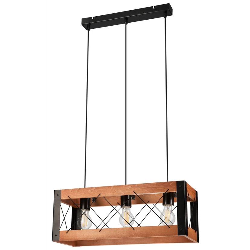 Lee pendellampe av bøketre og svartlakkert stål - rektangulær skjerm med tre fatninger Lee pendellampen er produsert i Europa og imponerer med sin kombinasjon av rustikke, moderne og naturlige designelementer. Den rektangulære skjermen har tre nedovervendte fatninger, og de svartlakkerte stålelementene suppleres av stivere i lyst bøketre. Det finnes også et svart opphengssystem.