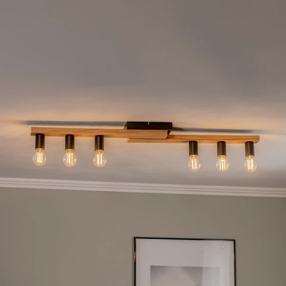 Envostar taklampe Laurent, tre/svart, 6 lyskilder