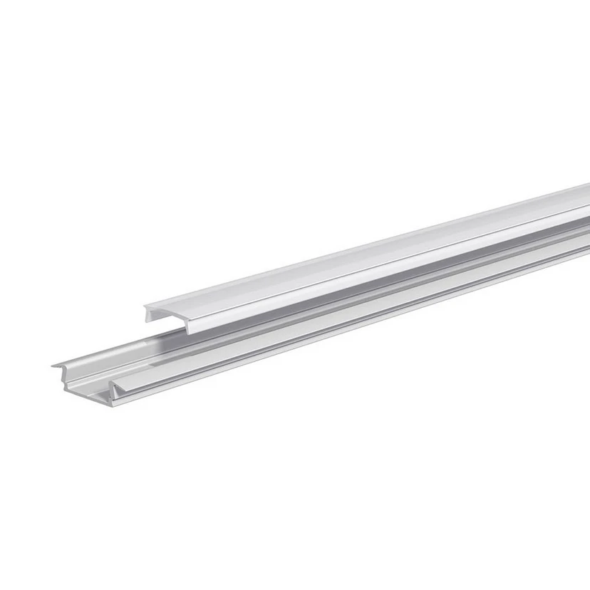 T-profil APFLAT3 i aluminium med deksel, perfekt til møbler og arbeidsflater T-profilen i aluminium leveres med et matchende deksel i opal polykarbonat og er takket være sin utforming ideell til møbler som vitrineskap eller kjøkkenskap. Profilen fungerer som en kjøleribbe ved bruk av LED-striper, men kan også brukes som en praktisk kabelkanal - Transmisjonsdeksel ca. 65 % - Egnet for LED-striper med en maksimal effekt på 10 W per meter - Ikke kompatibel med EVN-profiler - Leveres uten endestykker og festeklemmer