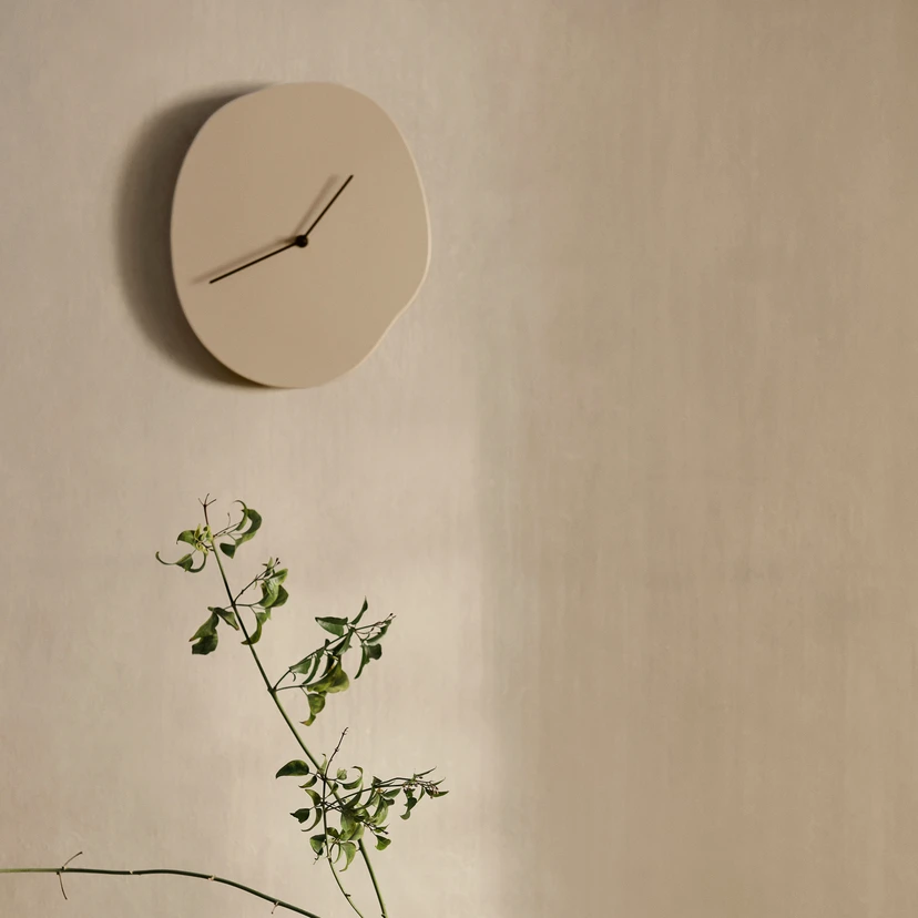 ferm LIVING veggklokke Melt, beige, høyde 33 cm, tre, malt
