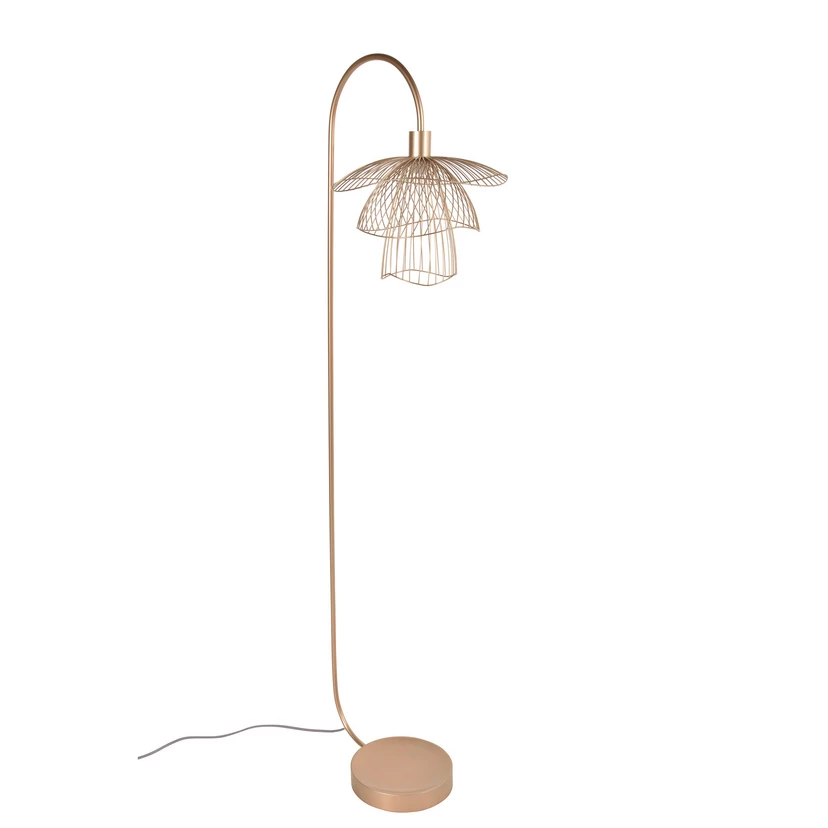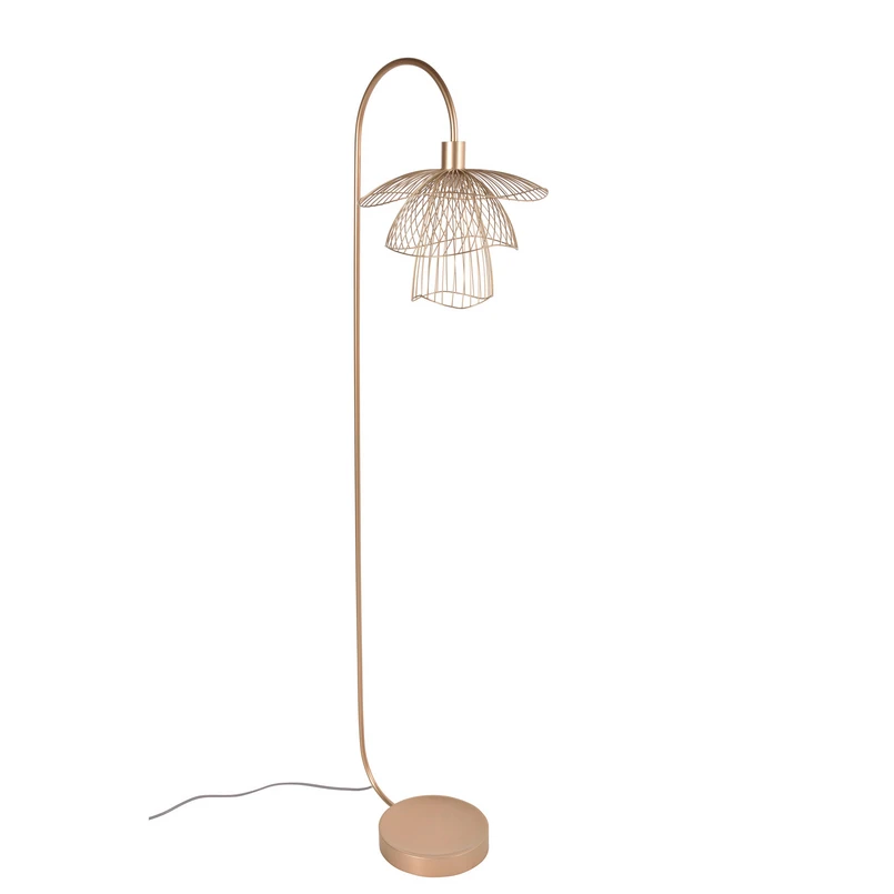 Papillon gulvlampe inspirerer med sitt elegante utseende og de fine linjene som flyter gjennom figurene på en flytende og harmonisk måte og sikrer et sammenhengende helhetsbilde. Fra den stabile basen løper en stang oppover i en buet form og ender i tre forskjellige paraplyer, som er plassert oppå hverandre og fremdeles gir utsikt over lyskilden. Skyggene er laget av mange delikate metalltråder, noe som får dem til å se veldig lette og luftige ut. Dette gjør at lyset kan dukke opp rundt og lyse opp i rommet. I tillegg til den positive lyseffekten, skapes et atmosfærisk mønster av mellomrommene som forsiktig legger på omgivelsene. Med denne moderne gulvlampe kan private oppholdsrom bli komfortabelt opplyst i tillegg til rom på hotell og få en ekstra høy dekorativ faktor.