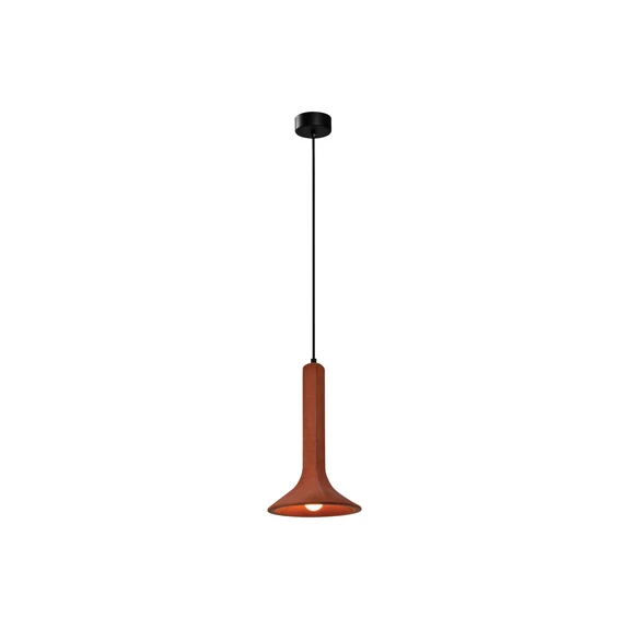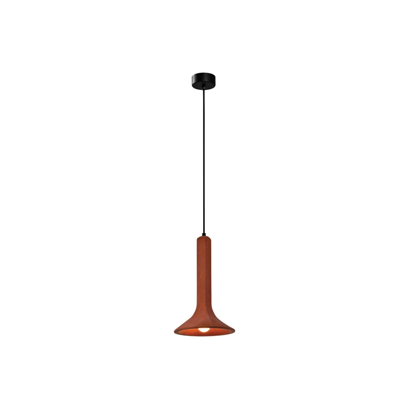 Funnel-pendellampe med trompetformet betongskjerm Funnel-pendellampen er det perfekte valget for alle som elsker det spesielle. Det iøynefallende designet gjør den til et høydepunkt i enhver stue, spisestue eller på kjøkkenet. Lyset fra pæren som brukes (ikke inkludert) skinner rett nedover og lyser opp f.eks. et spisebord på en passende måte - kan dimmes eksternt