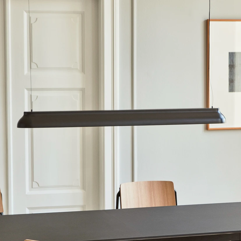 PC Lineær pendellampe med lang aluminiumsskjerm og diffuser