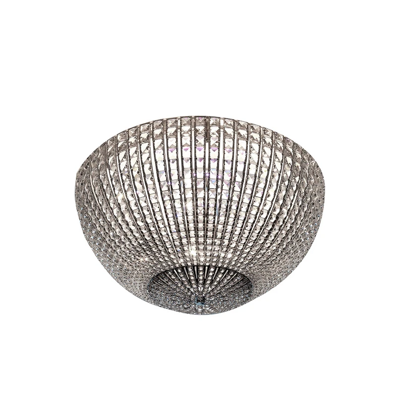 Den glitrende, sfæriske taklampe Helios imponerer med sine unike lyseffekter. Disse forsterkes av en liten avstand til taket, fordi lyset tar seg gjennom det og etterlater fascinerende spor i form av interessante mønstre i taket. Men Helios kan gjøre enda mer. Deres høykvalitets kuttede krystaller skaper et refraksjon av det innkommende lyset og vet hvordan de skal reflektere dette på en fortryllende måte til omgivelsene. taklampe er overbevisende i mottaksrom og haller som er avhengige av stilen til imponerende lyskilder. Helios gir private rom et elegant, nesten fantastisk preg og trollbinder omgivelsene med sitt fantastiske utseende. Høykvalitets metall med polert nikkelutseende danner grunnlaget for krystallet og gjør taklampe til et gjennomgående edelt designobjekt.