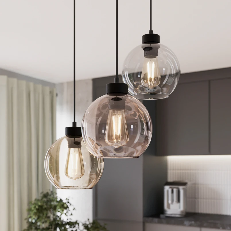 Hengelampen Cubus kombinerer moderne design med høykvalitetsmaterialer som glass og metall for å skape en stilfull atmosfære i alle rom. Med sitt klare og honningbrune fargespill setter den aksenter i stuen, kjøkkenet eller spisestuen. Lampen har 3 lyskilder og gir en imponerende lyseffekt som er både funksjonell og estetisk tiltalende.