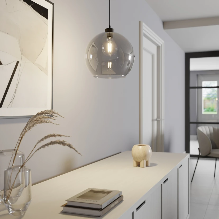 Hengelampen Cubus kombinerer moderne design med høykvalitetsmaterialer og setter stilfulle aksenter i alle rom. Den er laget av glass og metall og imponerer med sin røykgrå, transparente farge, som i kombinasjon med svarte elementer utstråler tidløs eleganse. Denne lampen er ideell for stuen, kjøkkenet eller spisestuen og passer perfekt inn i ulike interiørstiler.