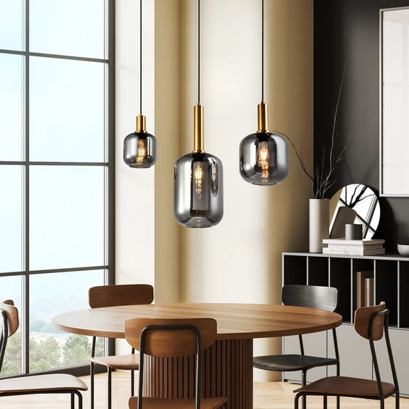 Hengelampe Fumo, røykglass, 3 lyskilder, lineær