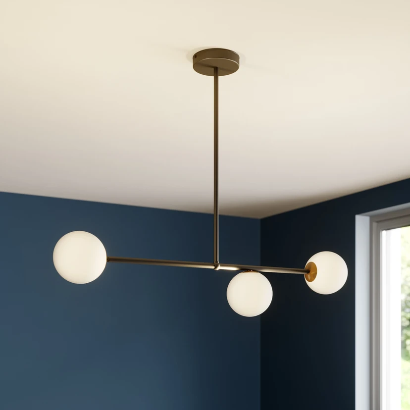 Hengelampe Gama 3: Elegant lampe med 3 lyskilder i pulverlakkert stål og glass