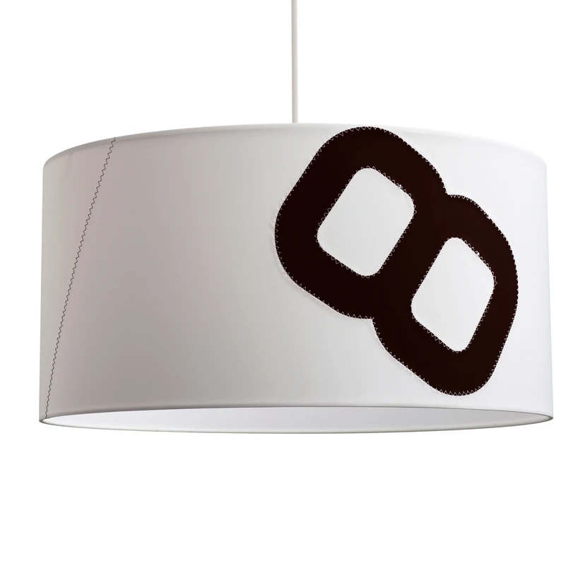 Upcycling er navnet på en metode der nye, forskjellige gjenstander lages av brukte materialer. Denne gjenbruken av stoffene er bærekraftig, unngår sløsing og skaper ting som forteller materialets historie. Den sylindriske lampeskjermen til Heimathafen hengelampe er laget av et brukt skjerm seil, hvorved antall seil kan sees i fragmenter på skjerm . Skjermen henger fra skjerm på en hvit baldakin kabel. Hengelampen er ideell for bruk i rom innredet i maritim stil, men også for å bringe et snev av seilerromantikk til andre fasiliteter - enten det er i spisestuen, i ferieleiligheten ved sjøen eller i seilklubben.